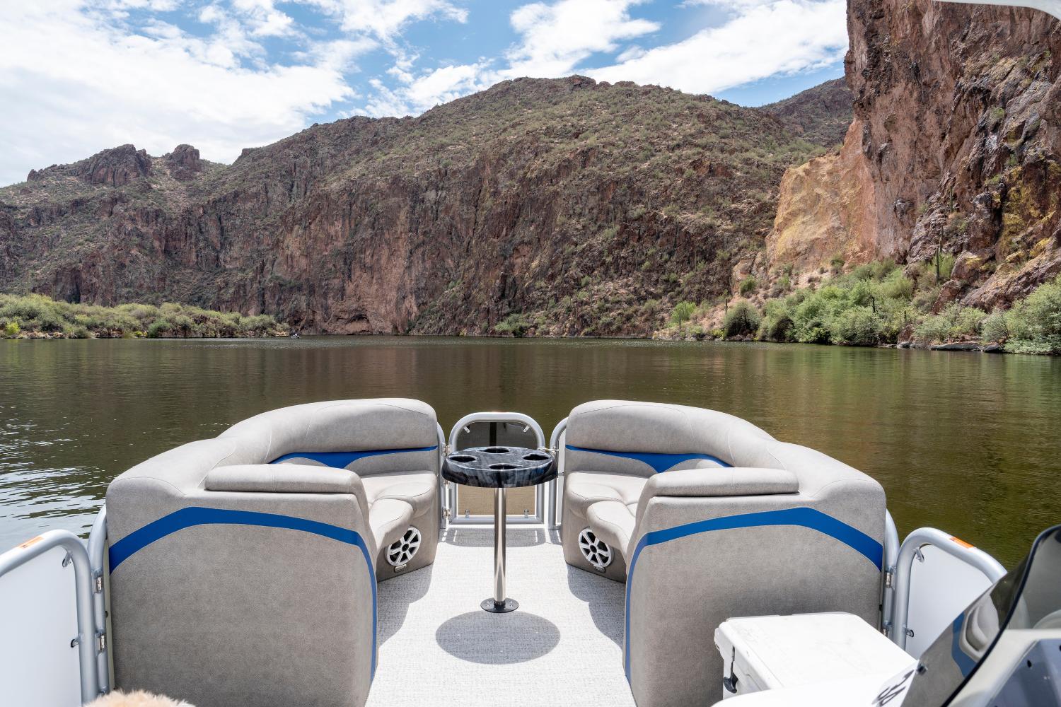 You deserve to have the most fun you can on the water, and Saguaro Lake Marina is here to help. Our rentals are clean, comfortable & reliable boats that fit every need. Equipped with stereo, bimini tops & economical outboard engines, you are all set for swimming, sunbathing, fishing, watersports, or just cruising the lake. Our fleet has the right boats for all occasions!